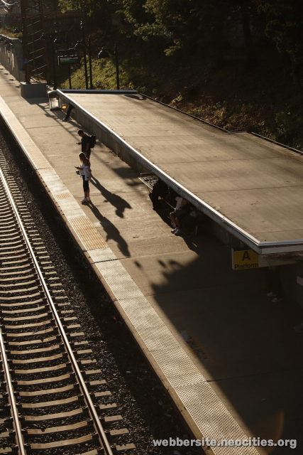 A photo of some train riders awaiting their chariot home. A long day deserves a long shadow.