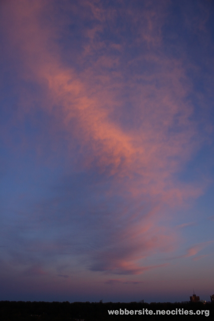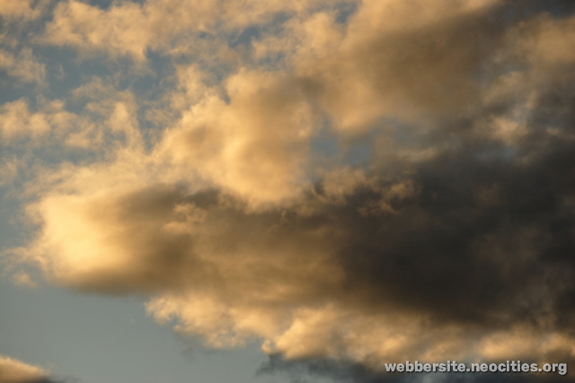 A photo of a mellow cloud soaking up the last orange rays of the day.