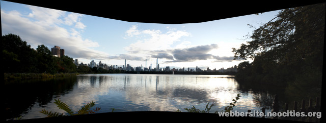 A stitched photo of the Jacqueline Kennedy Onassis Reservoir, loacted in Central Park, New York City.