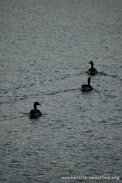 A photo of a trio of Canada Geese taking a lesiurely swim in the Jacqueline Kennedy Onassis Reservoir, loacted in Central Park, New York City.