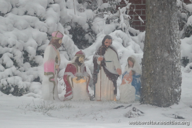 One of my neighbor's nativity scenes, on the first snow of the season.